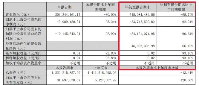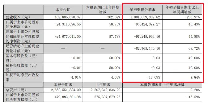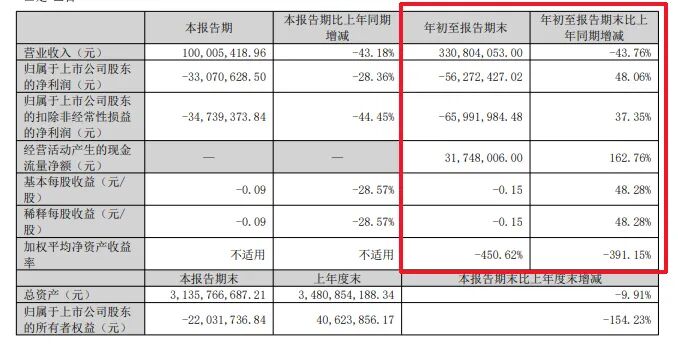 ST瑞和前三季度营业总收入3.31亿元,同比下降43.76%,归母净利润-5627.24万元,同比上升48.06%。按单季度数据看,第三季度营业总收入1.0亿元,同比下降43.18%,第三季度归母净利润-3307.06万元,同比下降28.36%。