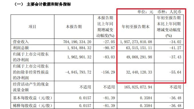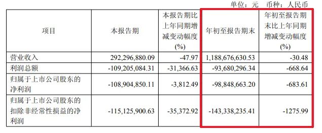 ST柯利达前三季营业总收入11.89亿元,同比下降30.48%,归母净利润-9884.87万元,同比下降683.61%。按单季度数据看,第三季度营业总收入2.92亿元,同比下降47.97%,第三季度归母净利润-1.09亿元,同比下降3812.49%。